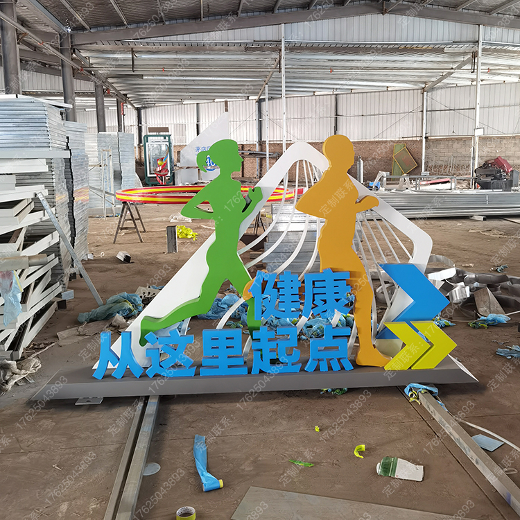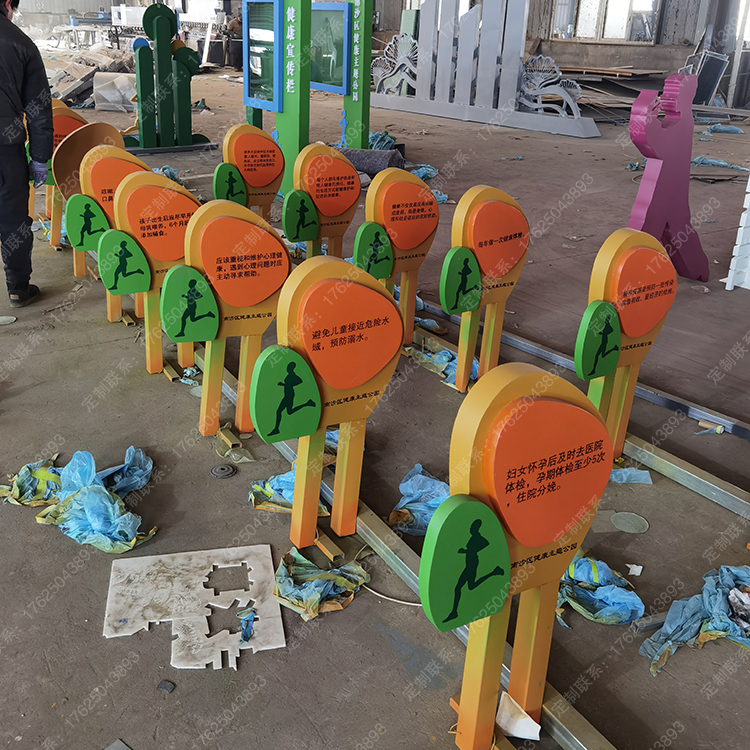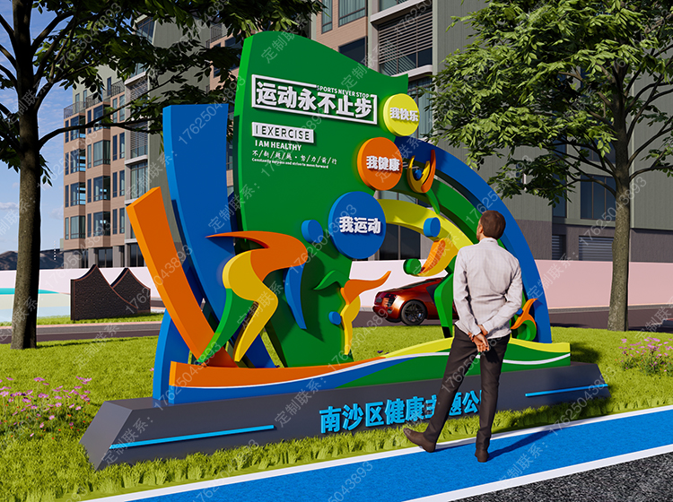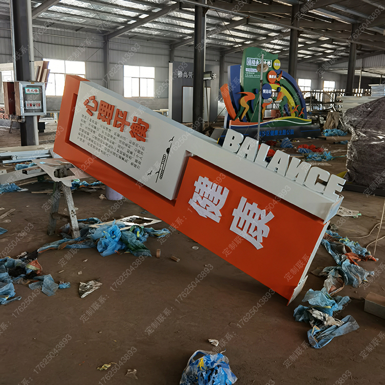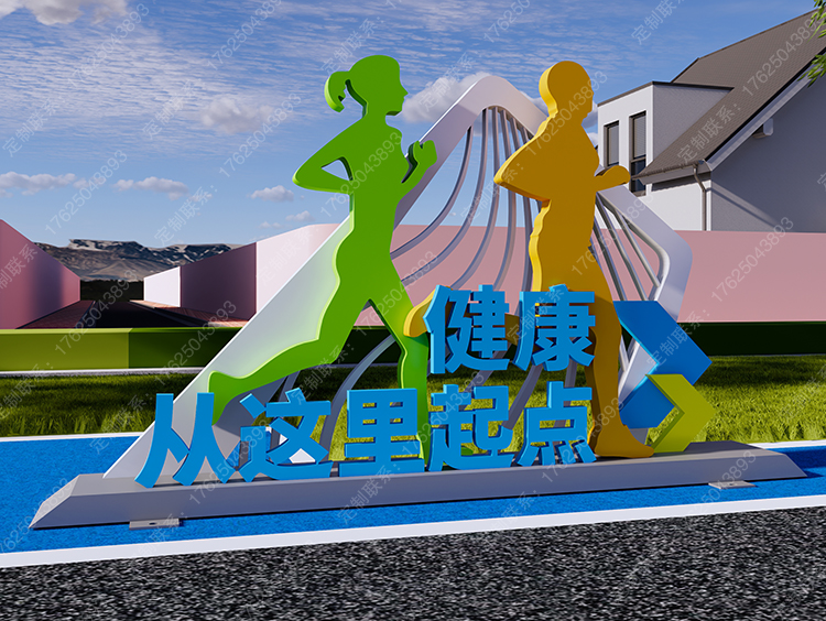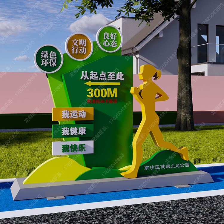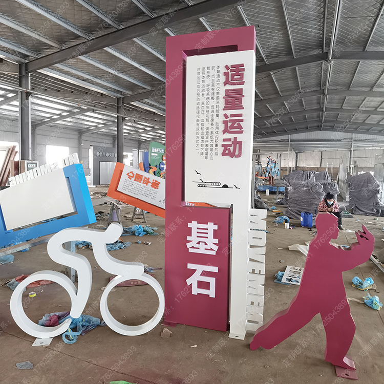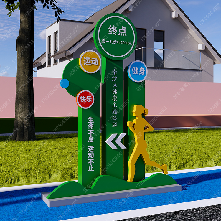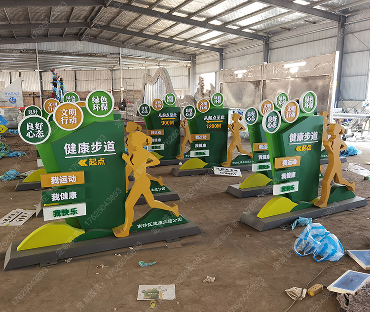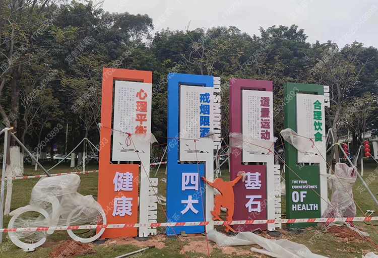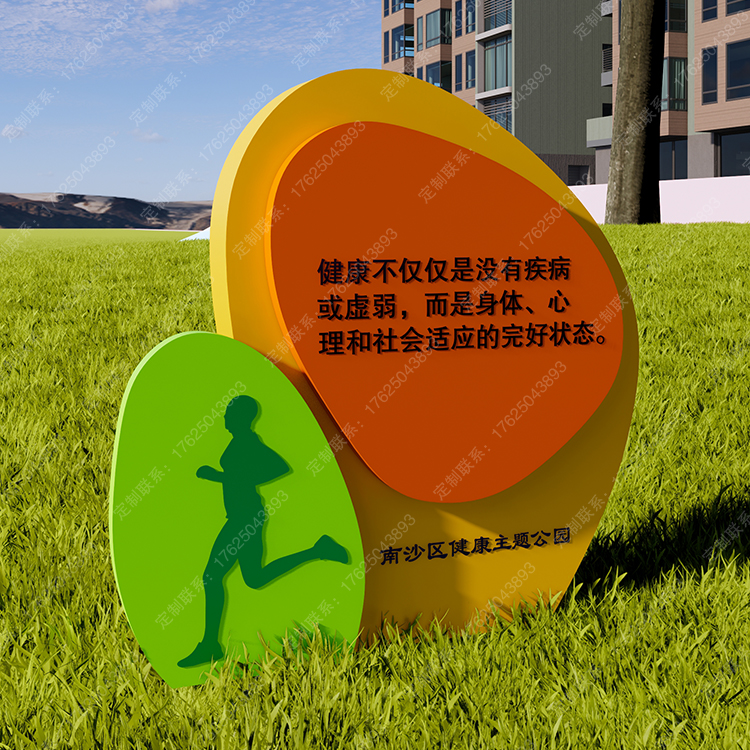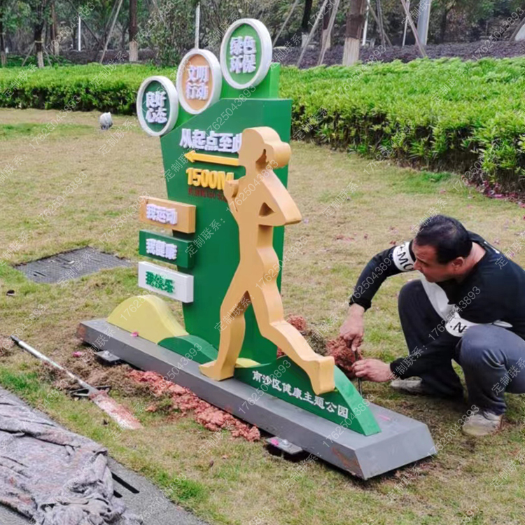 健康运动宣传标识标牌健身步道广告牌四大基石景观小品宣传牌