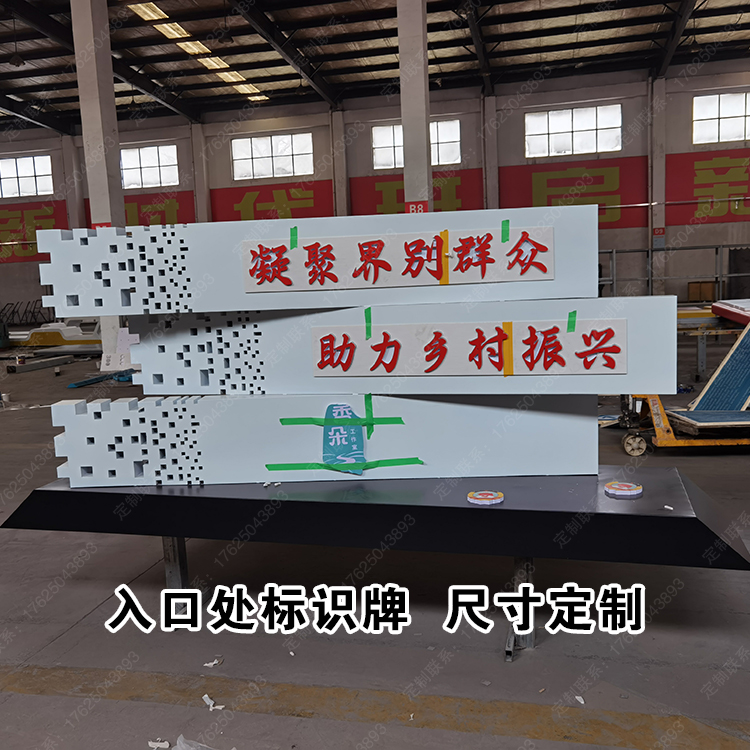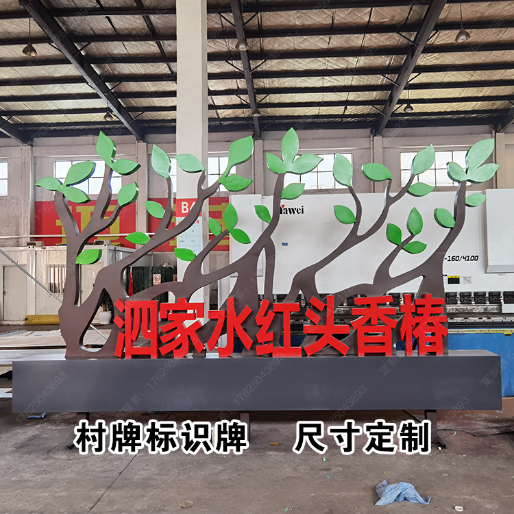 农村村牌绿色树叶景观小品树枝造型雕塑标识牌入口处广告牌