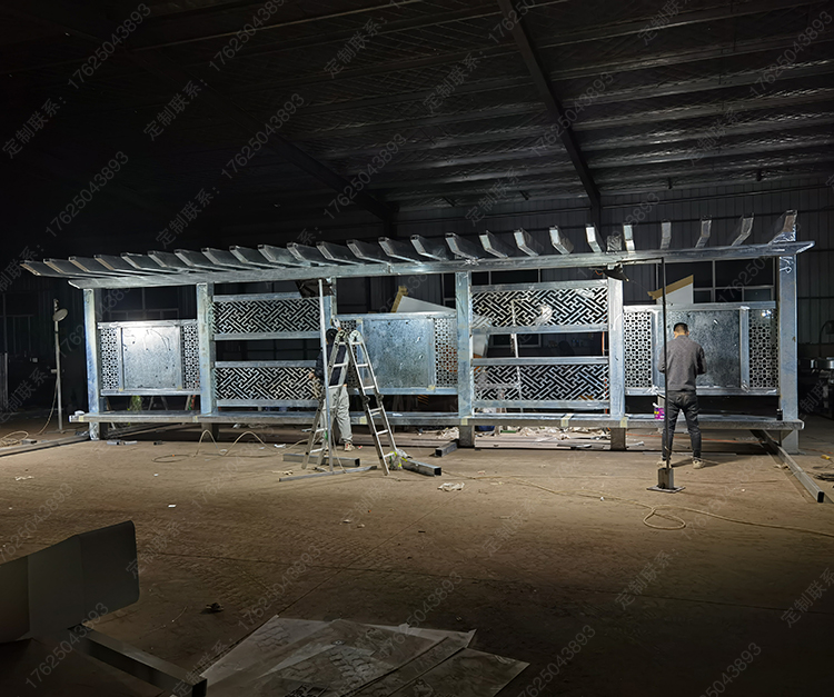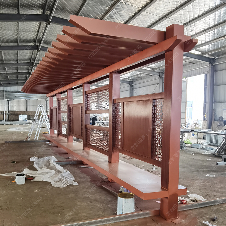 不锈钢廊架景观休息亭金属仿木纹凉亭镀锌板结构葡萄架