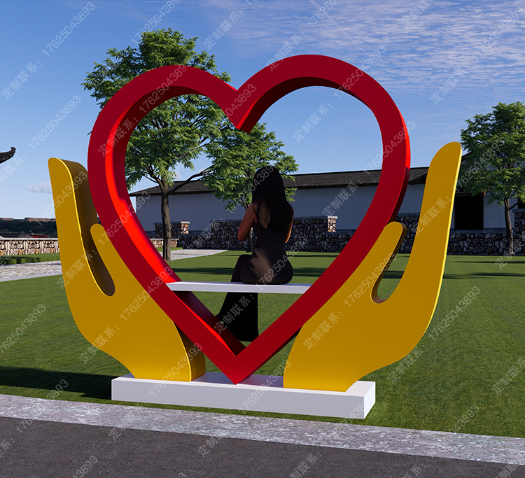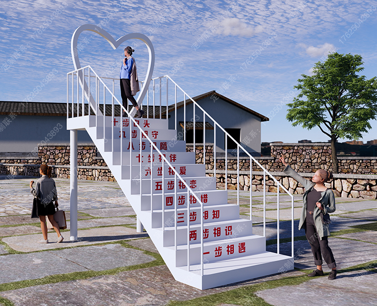 网红打卡爱心楼梯爱情十步天梯景区love广告牌钣金不锈钢拍照座椅
