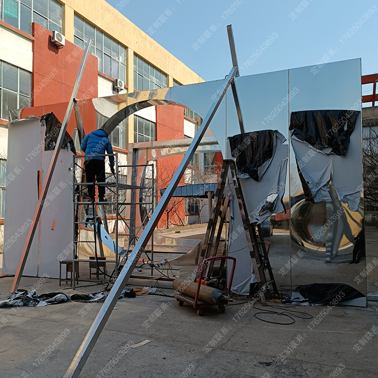 景区公园拍照景墙入口标识牌互动打卡雕塑不锈钢镜面景观小品