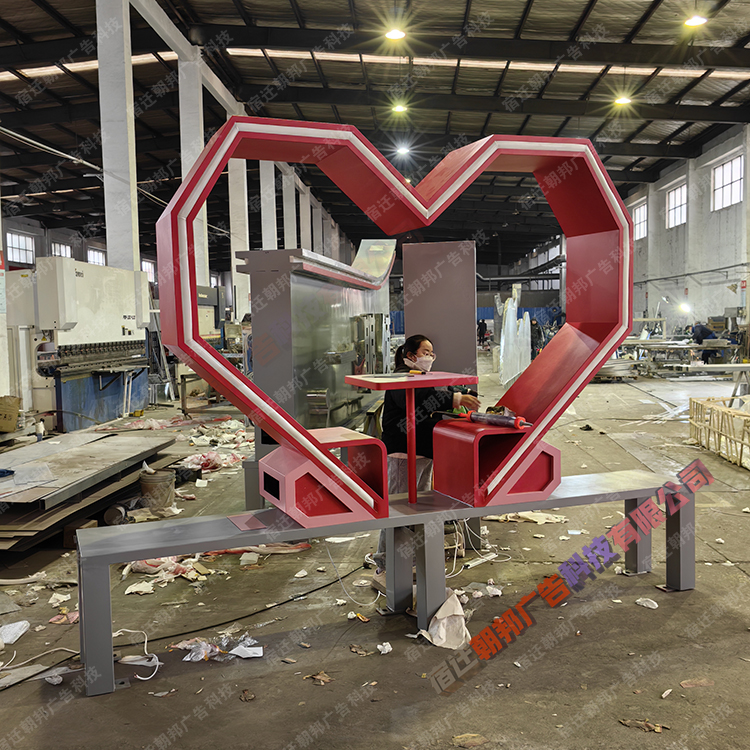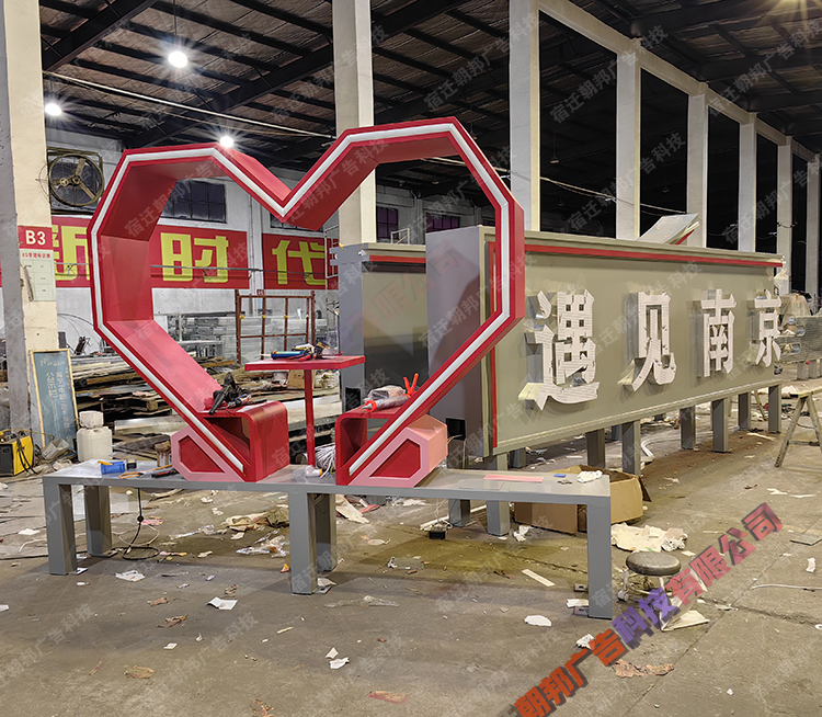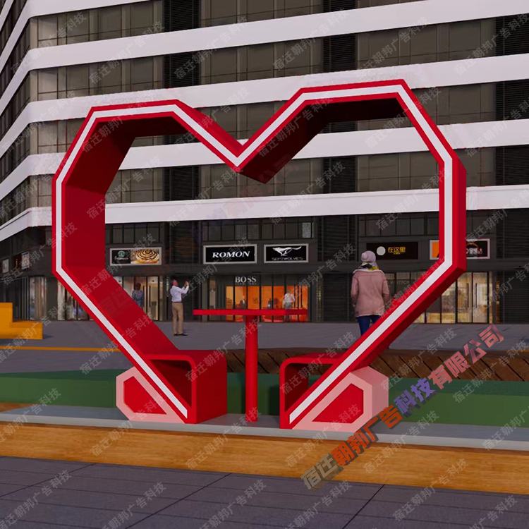 爱心雕塑发光文字景墙