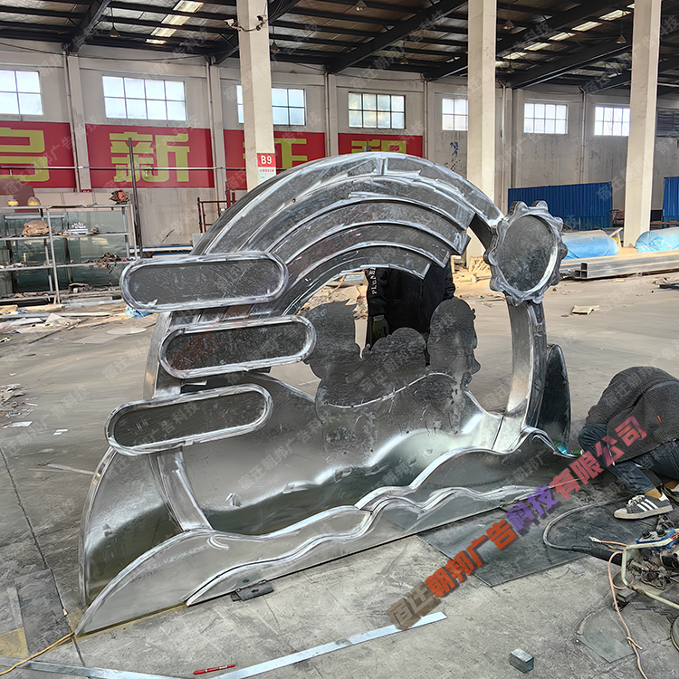 宿迁朝邦广告专业生产曲面雕塑,景观小品,不锈钢廊架,乡村振兴龙门架,镜面不锈钢雕塑,自行车人物运动小品、艺术镂空造型景观堡垒,联系电话17625043893